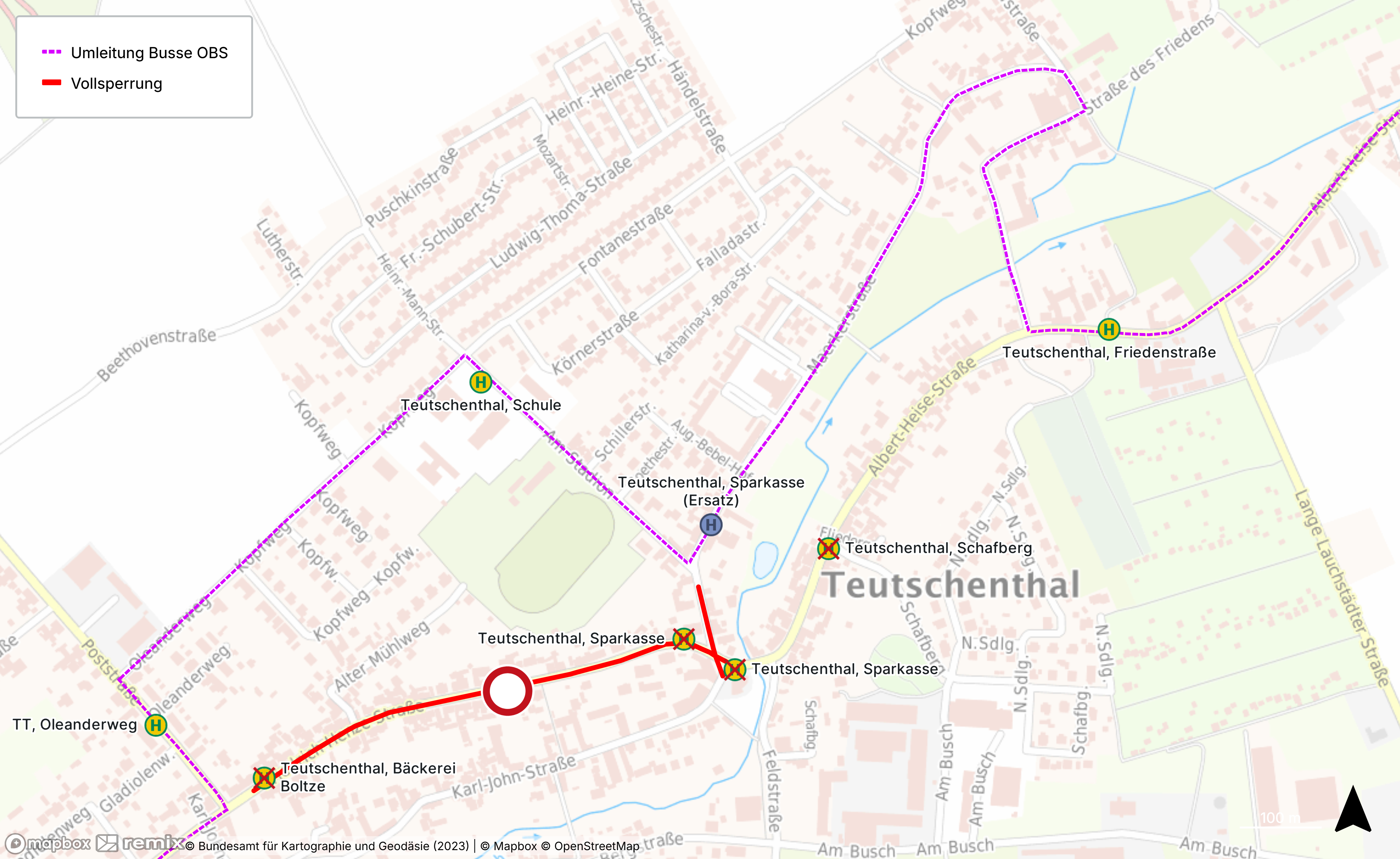 - Folgende Haltestellen können nicht bedient werden: Teutschenthal, Schafberg; Teutschenthal, Sparkasse; Teutschenthal, Bäckerei Boltze